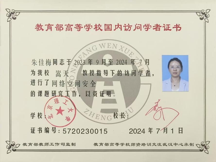 朱佳梅 教育部高等学校国内访问学者 2024.07