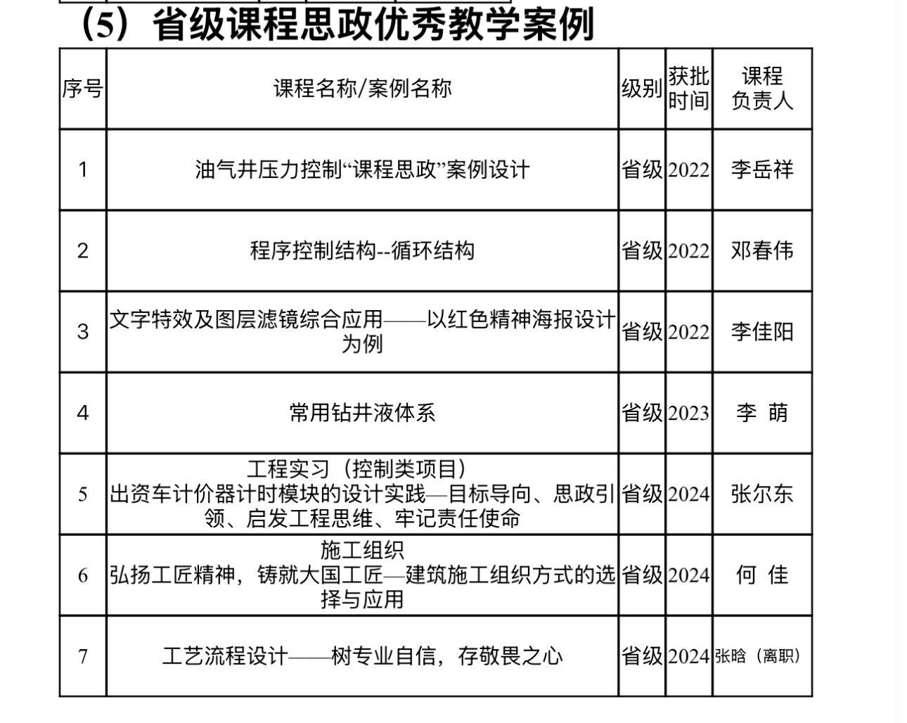 省级课程思政优秀教学案例(7个)