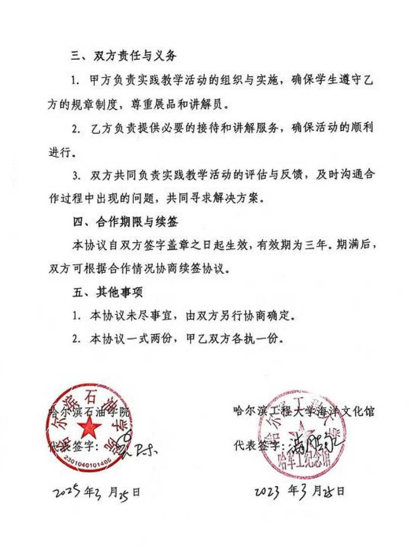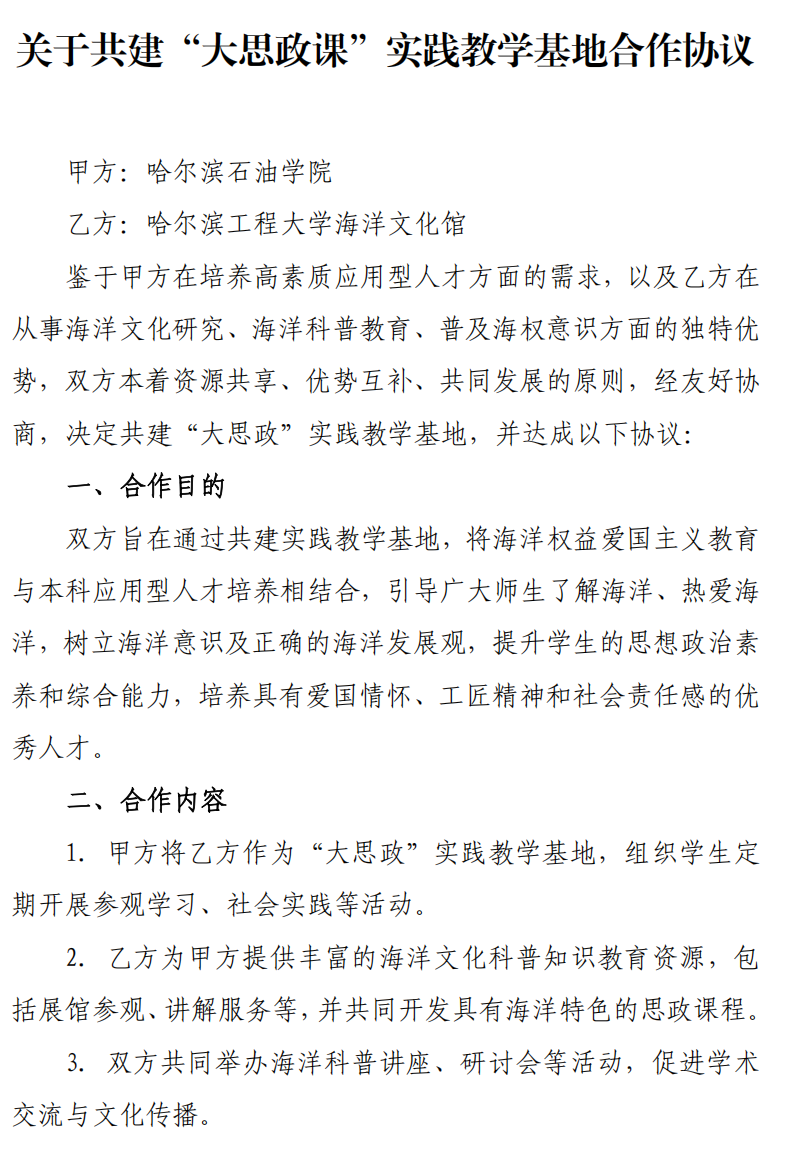 哈尔滨工程大学海洋文化馆校外实践教学基地协议