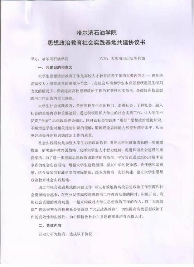 大庆油田历史陈列馆共建协议书