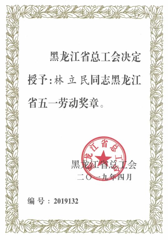 林立民 黑龙江省五一劳动奖章 2019