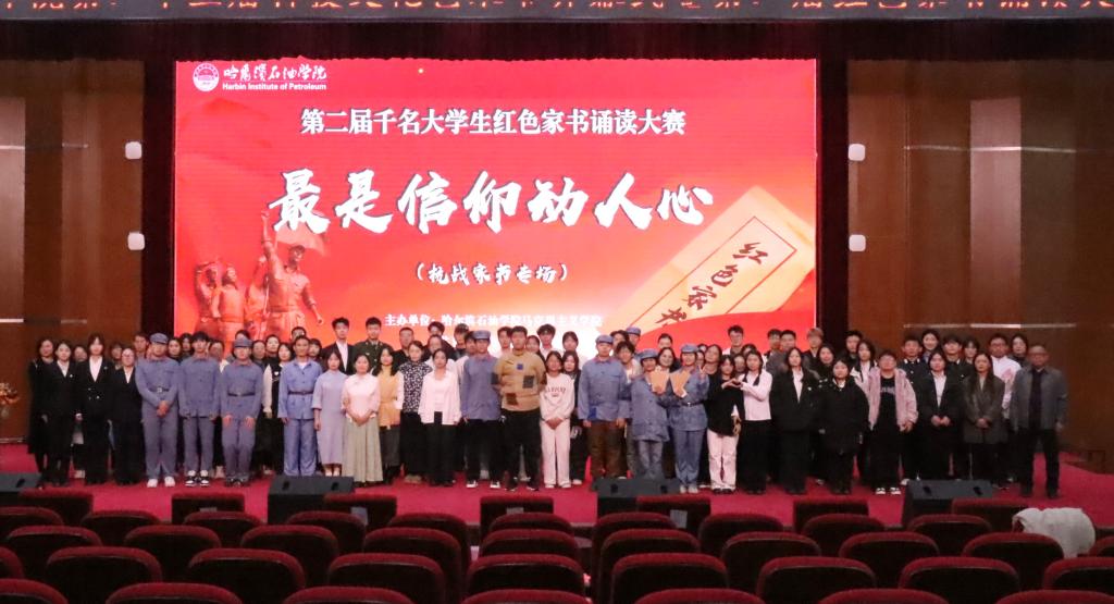 本次“抗战家书”诵读大赛不仅是一场视听盛宴,更是一次深刻的思想洗礼。通过诵读一封封饱含深情的家书,同学们更加深刻地理解了抗战精神的时代内涵,增强了历史责任感与民族认同感,也充分展现了哈油学子良好的精神风貌。今后,马克思主义学院将持续开展形式多样的红色主题实践教学活动,引导广大青年铭记历史、砥砺前行,在新时代征程中书写无愧于时代的青春华章。