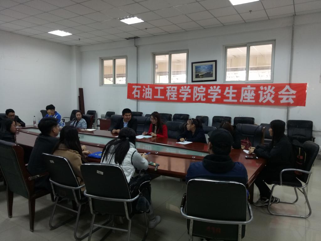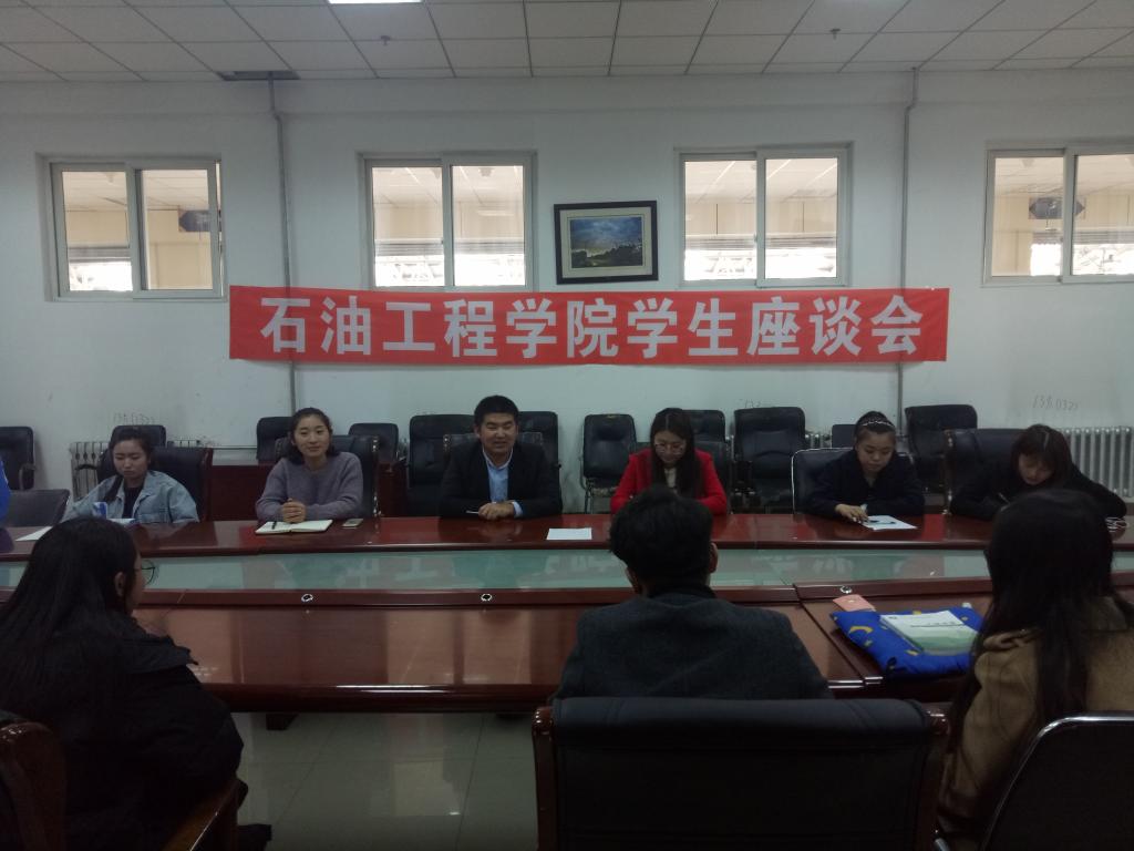 为进一步完善我院的教育教学工作和学生服务工作,及时了解和掌握学生的思想动态,帮助学生解决在当前学习、生活中存在的困难和问题。石油工程学院于10月27日中午12点在主教416会议室成功召开了学生意见征求座谈会。石油工程学院副院长李岳祥、副院长郑洲、办公室主任赵昕为在座各年级学生代表答疑解惑,解决困难。