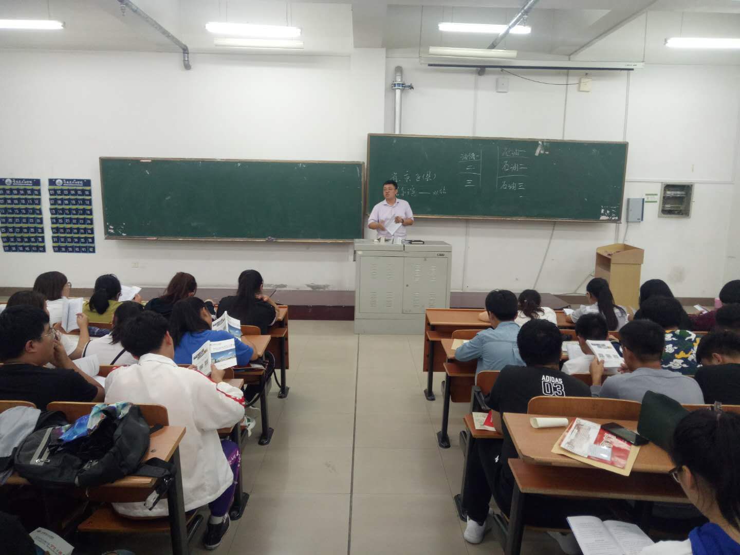 为使同学们深入了解学校的各项规章制度,尽快熟悉大学生活,构建和谐文明校园,石油工程学院党总支副书记康平军于2018年9月4日晚19点组织全体18级新生在主教501教室学习《学生手册》。