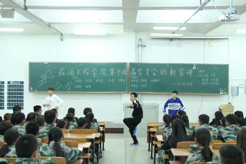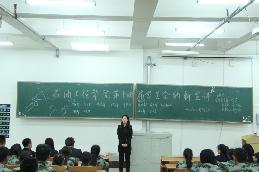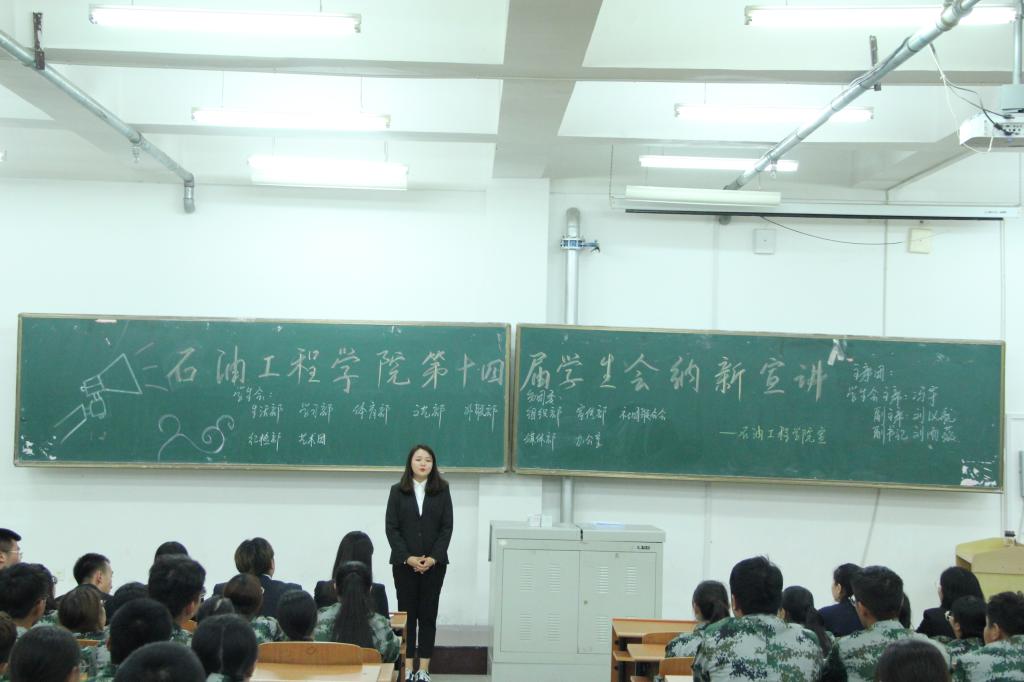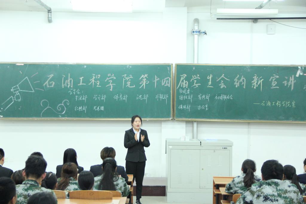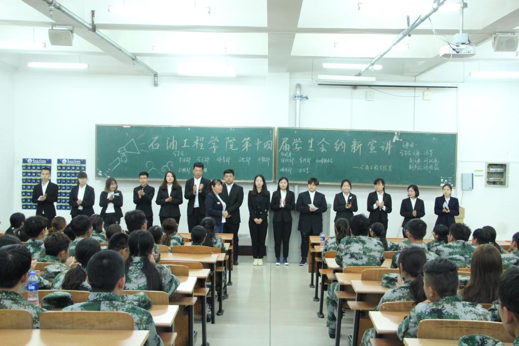 为了让2018级新生更多地了解我院学生会,更好地做好本届学生会的纳新工作。石油工程学院学生会利用9月11日晚自习时间,在主教501教室举办纳新宣讲会。石油工程学院团总支书记张雪率领分团委及学生会常委成员在新生们持久的掌声中,闪亮登场。