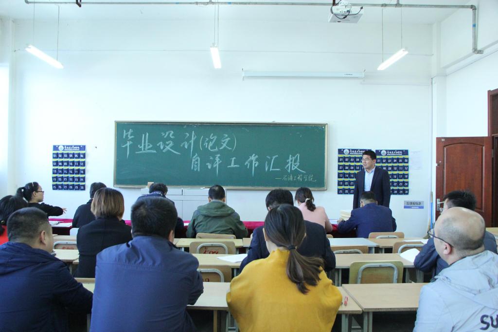 为了及时了解和掌握毕业设计(论文)工作的实施情况及存在的有关问题,加强毕业设计(论文)管理,确保毕业设计(论文)的质量,进一步做好本科生毕业设计(论文)工作,石油工程学院于10月12日在主教609教室组织召开了2018届毕业设计(论文)自评报告会。校专家组莅临检查指导,到场的评估专家有化学工程学院院长刘波,副院长杨昕,教师赵喜芝,石油工程学院院长龙安厚、副院长李岳祥。石油工程学院全体教师出席了本次报告会,此次报告会由李岳祥副院长主持。