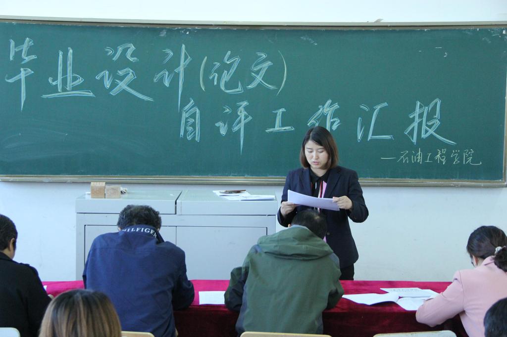 报告伊始,石油工程系主任张国芳作为汇报人,根据《哈尔滨石油学院毕业设计(论文)工作评估指标体系》的要求,立足实际,结合教学向在座校专家组介绍了我院2018届毕业生毕业设计(论文)的相关情况。报告后,校专家组领导对毕业设计(论文)中出现的明显问题与我院教师进行了积极的探讨,专家组对我院毕业设计(论文)工作的规范化、标准化提出了指导性意见。最后,龙院长就我院毕业设计(论文)的自评工作做出了总结,“实事求是,汇报问题,解决问题”是进一步做好我院毕业设计(论文)工作的主要方向。