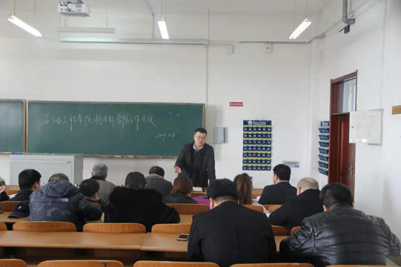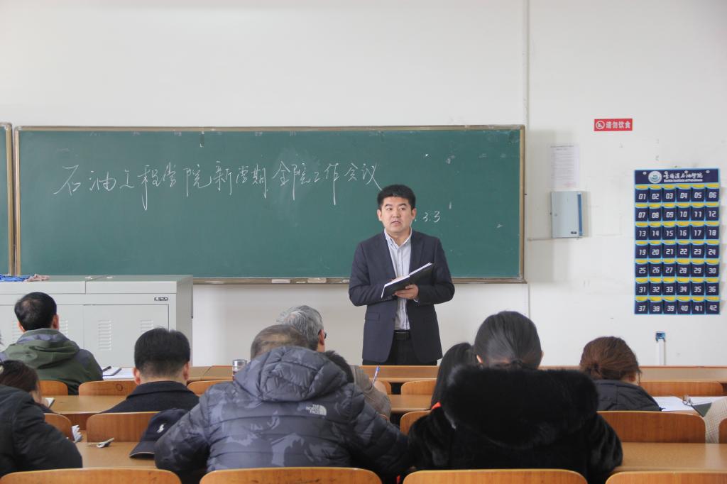 为更好的开展新学期工作,3月2日上午8时30分,石油工程学院在主教学楼426教室召开新学期全院工作会议,会上对本学期全院的教学管理,科研创新,党建工作,学团建设以及各项工作进行了具体分配和工作部署。会议由石油工程学院院长龙安厚主持,全院教职工参加会议。