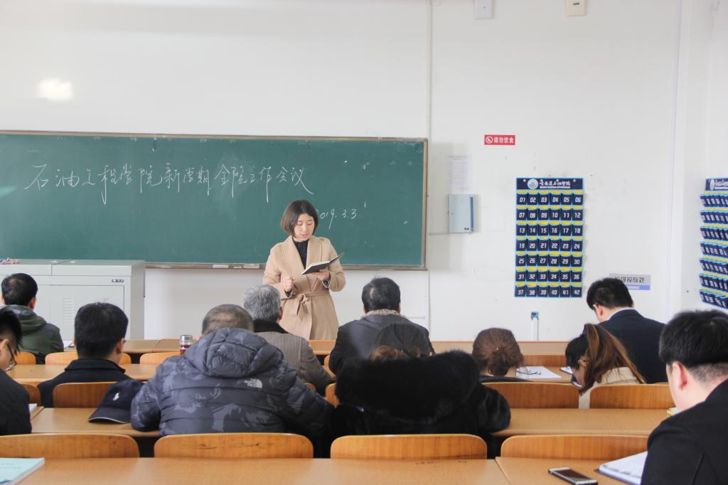 最后,石油工程学院副院长郑洲进行了几方面工作的介绍,希望大家在科研管理,教学改革,评级职称中能够取得更好的成绩。她强调,哈尔滨石油学院领导希望更多的老师能够尽量多的参加学术会议中去,更好的丰富自己的教学能力,此外根据石油工程学院要求在人事方面,年度考核方面提出了问题及解决办法。