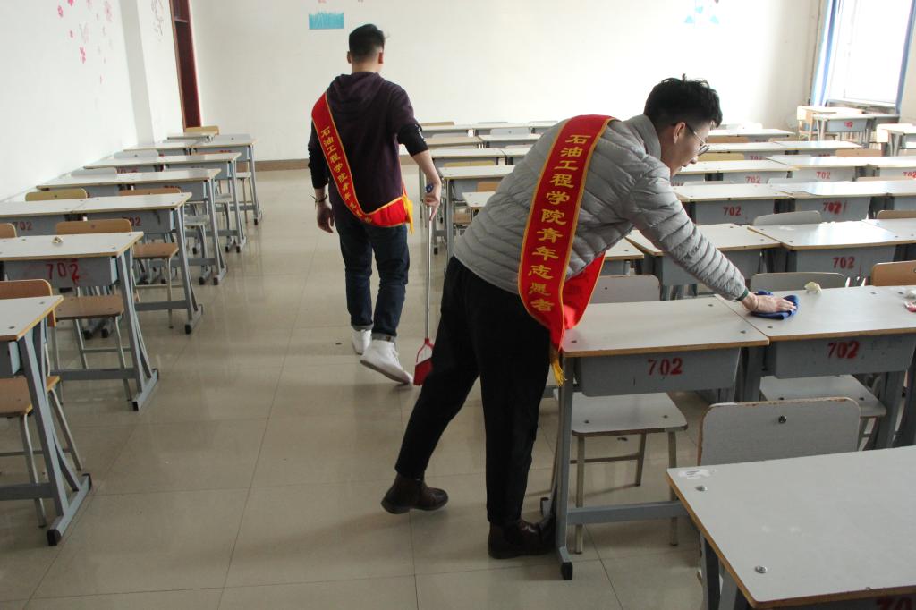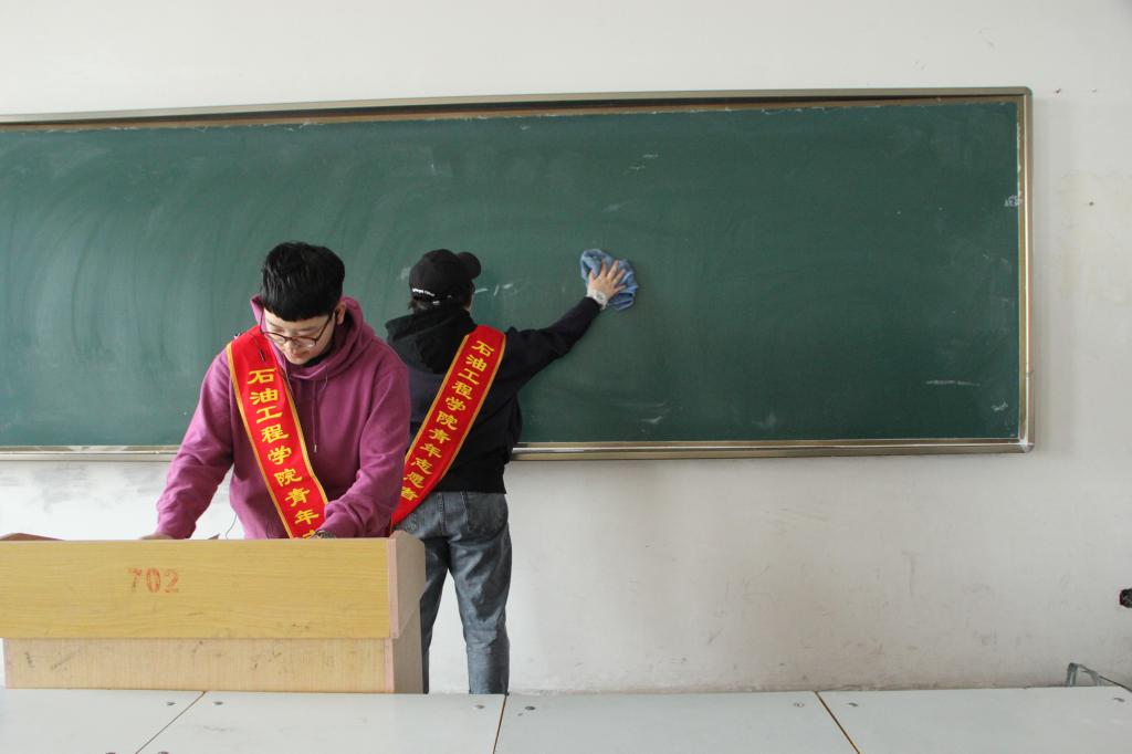 为贯彻雷锋乐于奉献的精神,同时也给同学们创造一个良好的学习环境石油工程学院学生会于3月5日,新学期开始的第二天,进行了校内环境卫生大扫除。