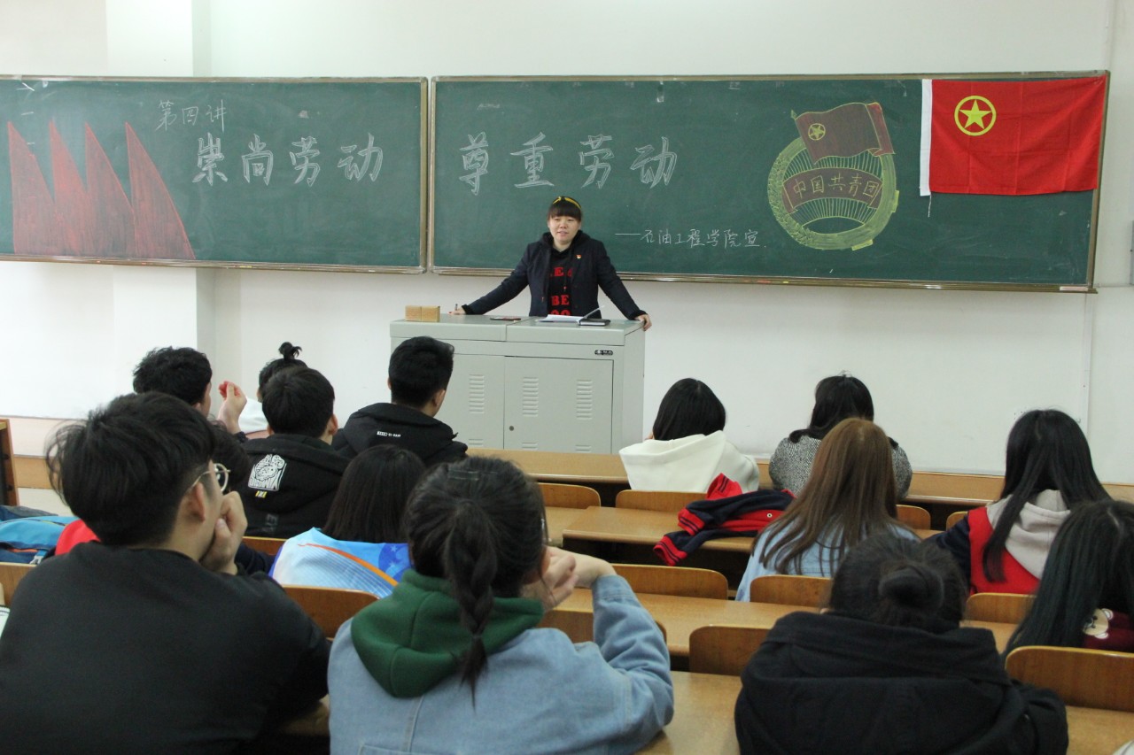 为了引导学生“学懂弄通做实”党的十九大报告精神,弘扬劳模精神和工匠精神。4月1日中午12时石油工程学院于主教426举办“崇尚劳动尊重劳动”主题团课活动。本次团课由石油工程学院团总支书记张雪老师主讲。