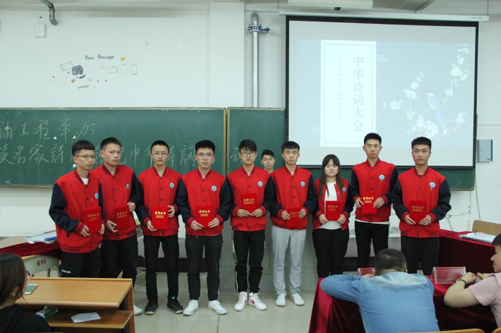本次活动分为诗词接龙,狭路相逢和飞花令三部分。前两部分为基础必答题在这两个环节中每组选手也都打起了十二分精神积极应战,同学们思维敏捷对经典诗词了解颇深。飞花令作为选答题由特邀嘉宾阴非凡分别从“风、花、雪、月”中随机选出关键字由选手作答。此环节竞争激烈,选手们你来我往激扬诗句的表现让观众感受到古诗词文化的博大精深。赛场上不时响起观众热烈的掌声和喝彩声,他们纷纷为台上选手加油助威,同学们精彩绝伦的表现充分展现了我院学生丰富的文学底蕴。经过重重比拼油气储运一班获得一等奖,石油工程一班和油气储运二班获得二等奖,油气储运三班、石油工程二班和石油工程三班获得三等奖。