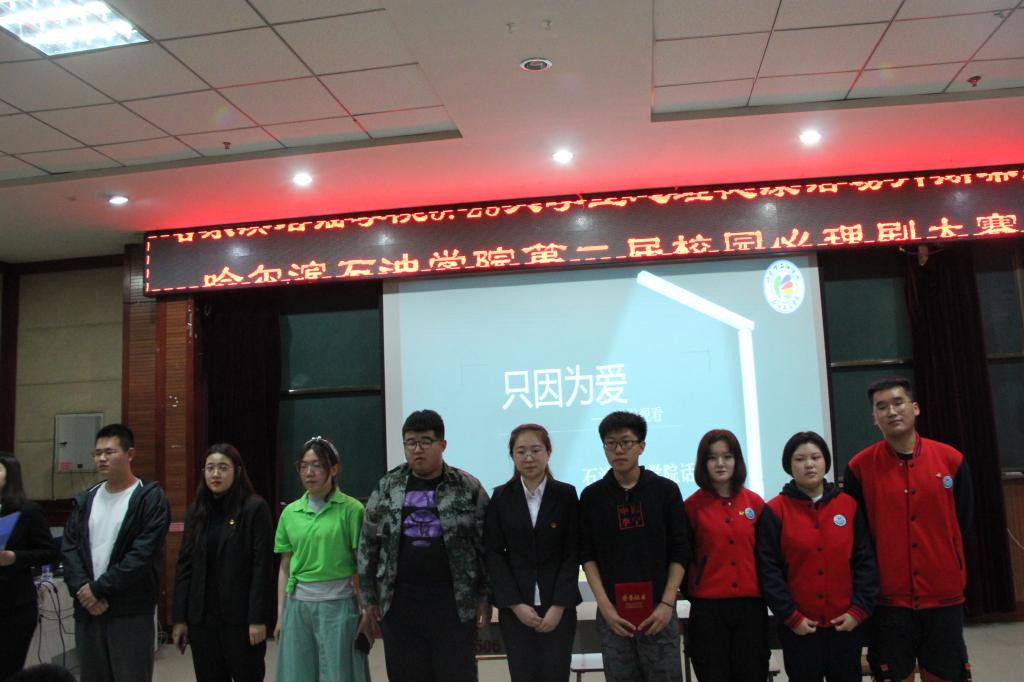 我院由刘潇、赵德力、李恩红等同学在袁爽老师的指导下为大家带来了作品《只因为爱》:作品表达出了李响同学成长路上的那些事,一路走来,告别一段往事,走入下一段风景。路在延伸,风景在变幻,人生没有不变的永恒。可陪伴在身边走过一路风风雨雨,牵连着幸福与快乐的,是那为我们日夜操劳却从不抱怨的父母,是他们让我们前行道路铺满鲜花,是他们让我们坚定的信念,执着的本能。他们才是我们真正要珍惜的人。比赛中,选手们将感情融入到角色当中,用欢笑和泪水充分的演绎出大学生的心理成长历程,在主题和趣味兼备的同时又起到了寓教于乐的心理教育效果,最终石油工程学院以总分94.7分的成绩荣获二等奖。