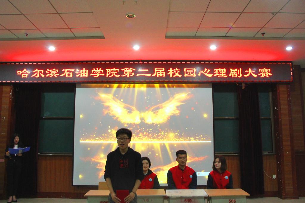 为进一步贯彻落实《教育部关于加强普通高等学校大学生心理健康教育工作的意见》等文件精神,推动我校大学生心理健康教育工作的开展,更好地引导学生关注自身发展、树立正确的价值观、人生观,石油工程学院于5月28日下午1点半在主教518参加由学工处大学生心理健康与咨询中心开展的大学生心理剧活动。出席本次活动的嘉宾有哈尔滨石油学院党委副书记杨宏及各学院的党总支书记副书记,团总支书记副书记。担任本次比赛的评委有大学生心理健康教育与咨询中心主任、国家二级心理咨询师彭雷,心理教育专职教师、国家二级心理咨询师赵全宇,心理教育专职教师、国家三级心理咨询师王威,心理教育专职教师、国家三级心理咨询师袁爽。