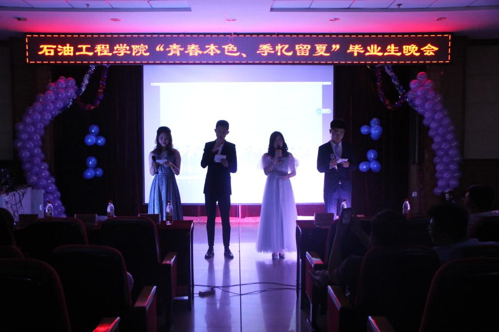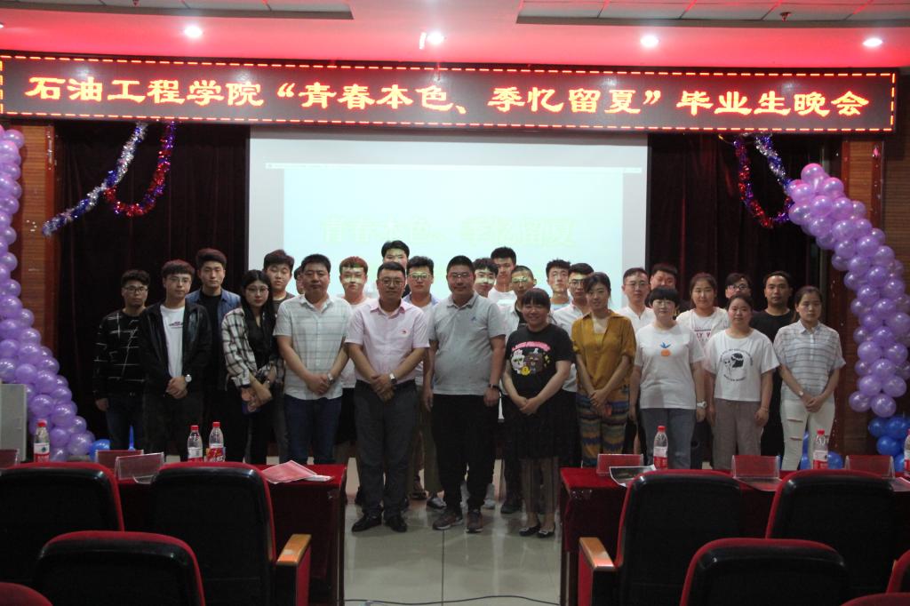 “多年师生情,今夕恨别离。满堂祝福语,只赠学子行”。又是一年毕业季,哈尔滨石油学院石油工程学院以“青春本色,季忆留夏”为主题的2015级毕业生晚会于6月20日晚5点在主教518隆重举行。出席本次晚会的领导有,石油工程学院党总支书记康平军,石油工程学院副院长郑洲,石油工程学院团总支书记张雪,石油工程学院15级辅导员于洪峰,石油工程学院17级辅导员王昱。参加本次晚会的嘉宾有信息工程学院党总支书记毛雷。刘雨薇、赵跃、刘霄、薛衎主持本次晚会。