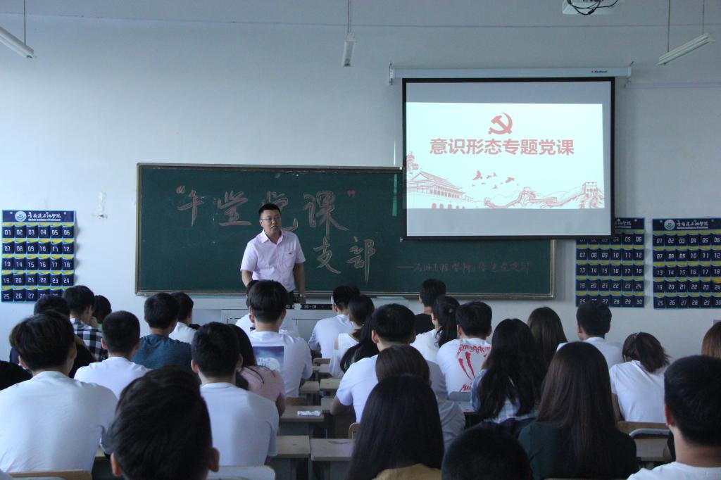 为积极响应省教育工委《关于“七一”期间在全省高校开展“千堂党课进支部”活动的通知》(黑教工委函【2019】37号文件要求)。石油工程学院党总支在接到校党委的通知后,积极准备,严格落实文件要求,于6月21日中午12时,在主教学楼609多媒体教室开展“意识形态”专题党课。我院学生党支部书记王昱、党总支组宣委员张雪、学生党支部纪检委员于洪峰参加本次学习,我院全体学生党员和部分入党积极分子聆听了党课。党课由石油工程学院党总支书记康平军主讲。