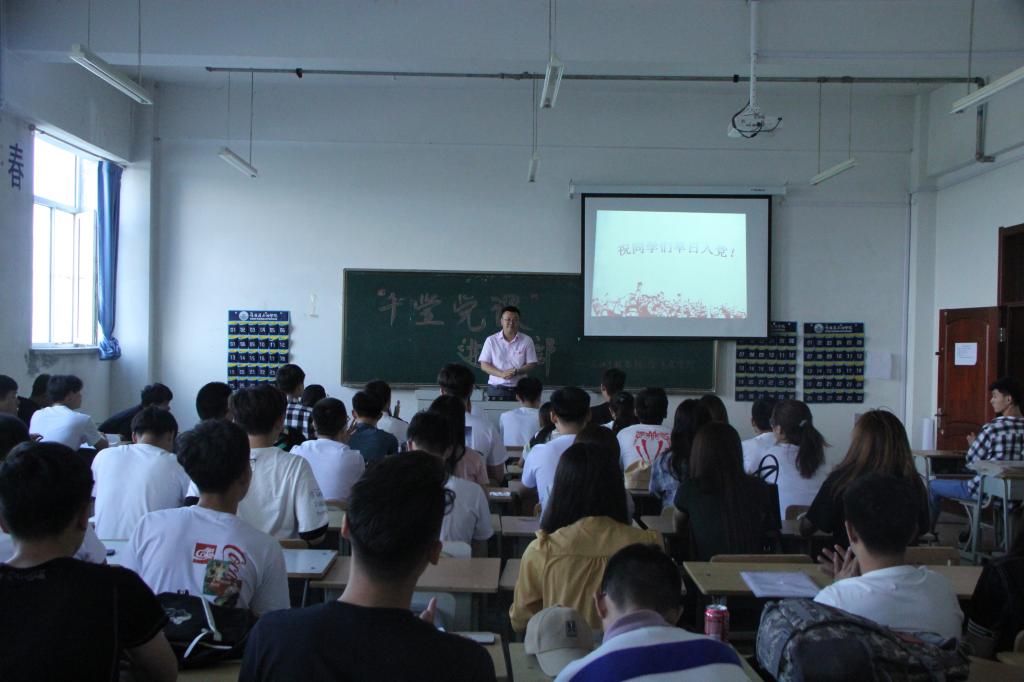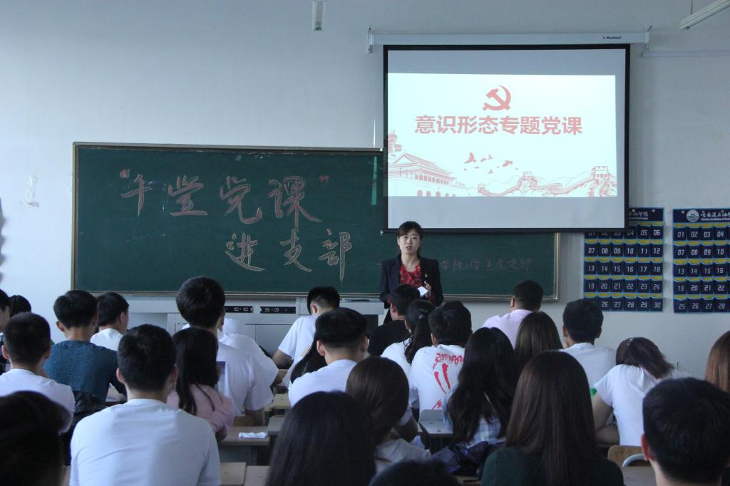 康平军首先向全体党员师生传达了省教育工委《关于“七一”期间在全省高校开展“千堂党课进支部”活动的通知》。随后,康平军则从什么是意识形态、意识形态斗争、牢固占领意识形态阵地等三个方面向与会党员进行了讲解和阐述。其中,从意识形态的概念讲到了意识形态的东西方差异,从苏联解体讲到了如何防范西方资本主义企图对社会主义国家进行和平演变;从马克思主义的信仰讲到了习近平新时代中国特色社会主义思想和文化自信;从防止宗教极端势力渗透谈到了坚定共产主义信仰。康平军书记的讲课内容丰富,旁征博引,理论性强。全体与会党员都能够认真听讲,积极互动,撰写心得,整理笔记。
