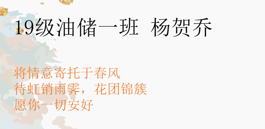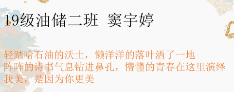 日子一点点流逝,石油工程学院编辑社团全体成员希望能用此次三行情书的方式来表达出对哈油深深的思念之情,也希望我们在不久的将来能够再次相遇在校园里。借此次哈尔滨石油学院第七届社团文化艺术节活动契机,用三行情书的方式祝愿每一位哈油学子平安顺遂,祝愿每一位为疫情负重前行的人健康快乐,更祝愿我们的祖国繁荣昌盛。