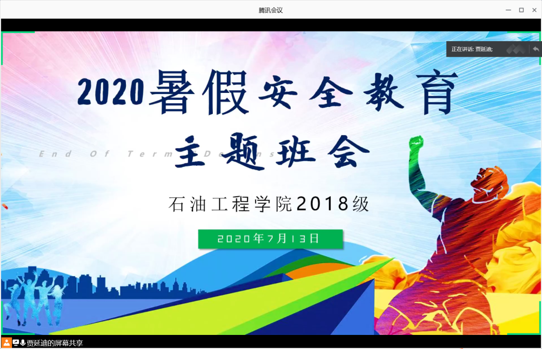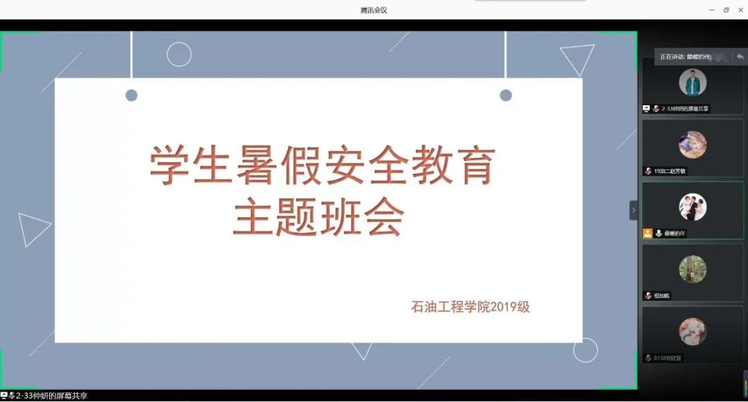 为进一步加强我院学生的暑期安全教育工作,强化学生的安全防范意识,进而保障假期学生安全。按照学生工作处相关文件要求,7月14日-16日期间,石油工程学院各年级召开了形式多样的“暑期安全教育”主题班会,各年级认真参与,积极传达相关文件要求。
