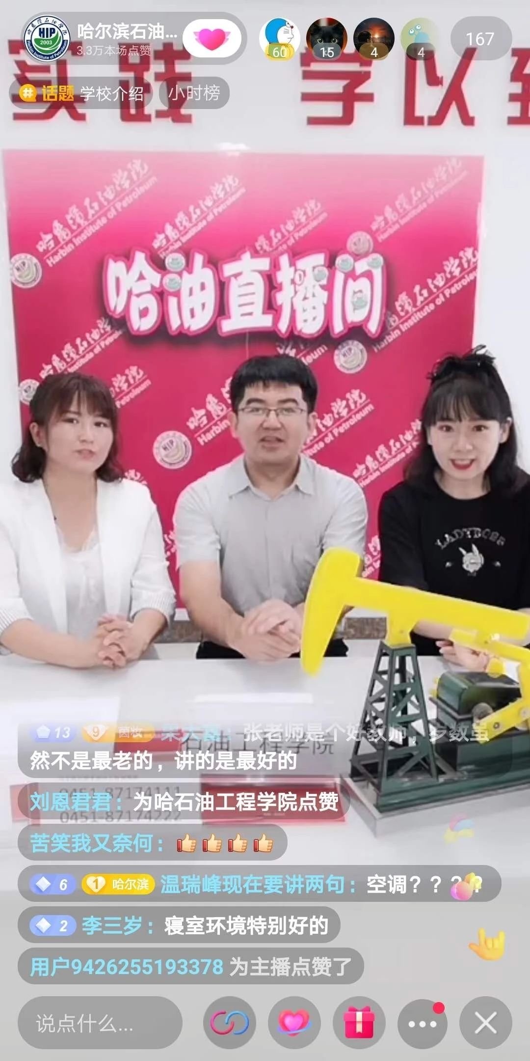 据不完全统计,此次直播的观看人数近两千人次,4w余次点赞量,取得了较好的效果。接下来请各位学生及家长继续关注我院官方微信平台,全方位地感受我们的哈尔滨石油学院石油工程学院。愿今年九月,优秀的你们,如约而至,让我们不见不散。
