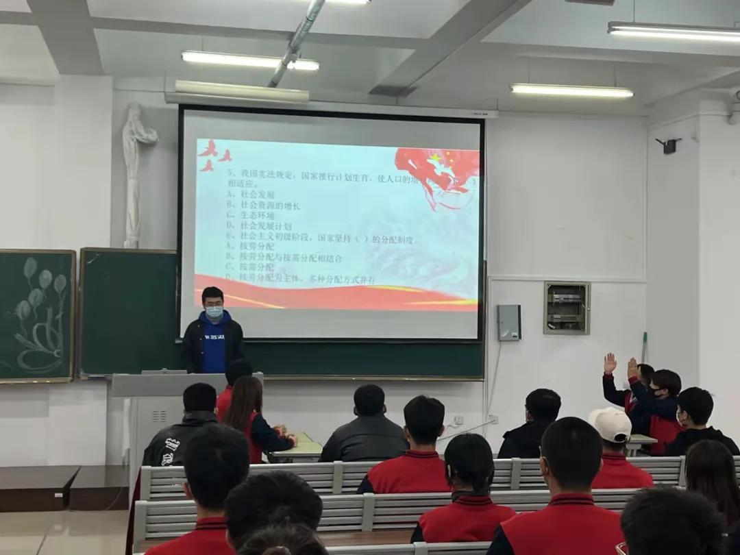 活动分为宪法知识竞赛、宪法答辩、“宪法卫士”行动计划三个环节,在知识竞赛环节中,同学们积极踊跃参加竞赛环节,充分学习了宪法的重要论述、宪法的历史、宪法的意义以及宪法的核心价值观,形成浓郁的学习氛围。随后,在宪法卫士环节中,同学们积极观看有关学宪法讲宪法的系列视频,充分汲取和学习了党的十九大和十九届六中全会精神,再一次深度的了解宪法的意义和权威性。