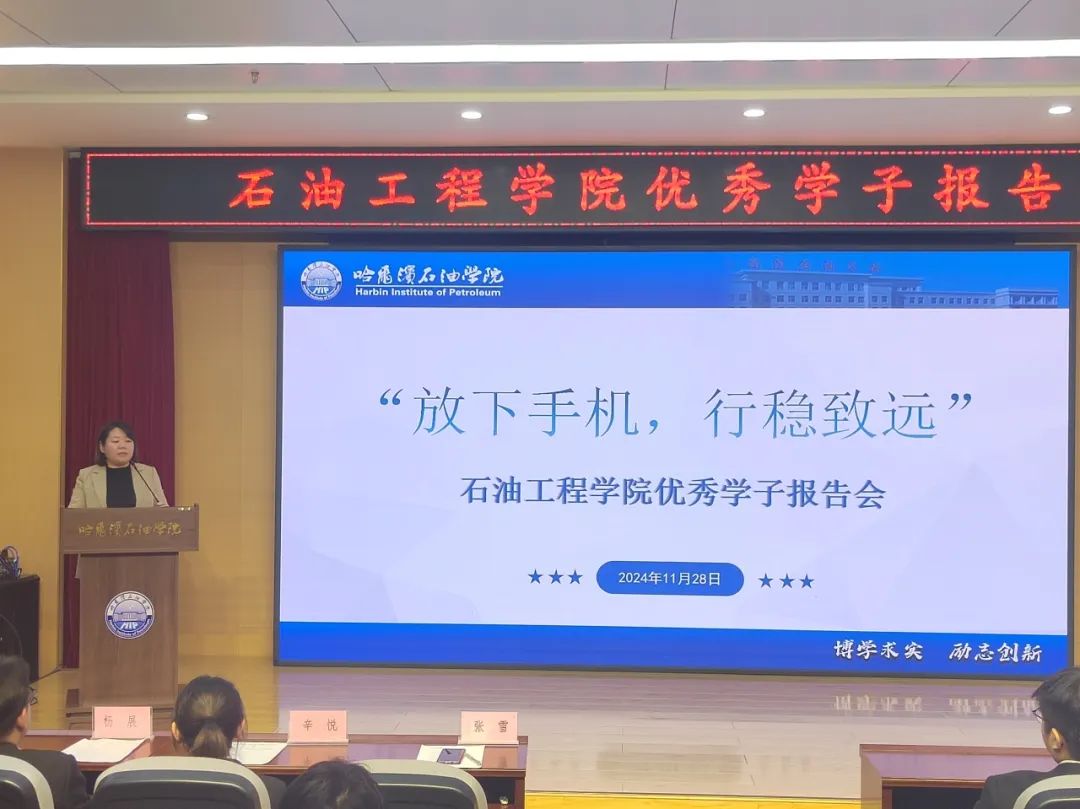 为进一步帮助学生认识到手机过度使用对学习的潜在影响,合理使用电子产品,拥抱健康生活,激发学生自我管理,以优秀学子的先进事迹教育人、带动人,以榜样的力量感染人、激励人,11月28日晚,石油工程学院在主教518开展“放下手机,行稳致远”优秀学子报告会。党总支副书记张雪、辅导员沈欣宇以及各年级学生代表400余人参加报告会。