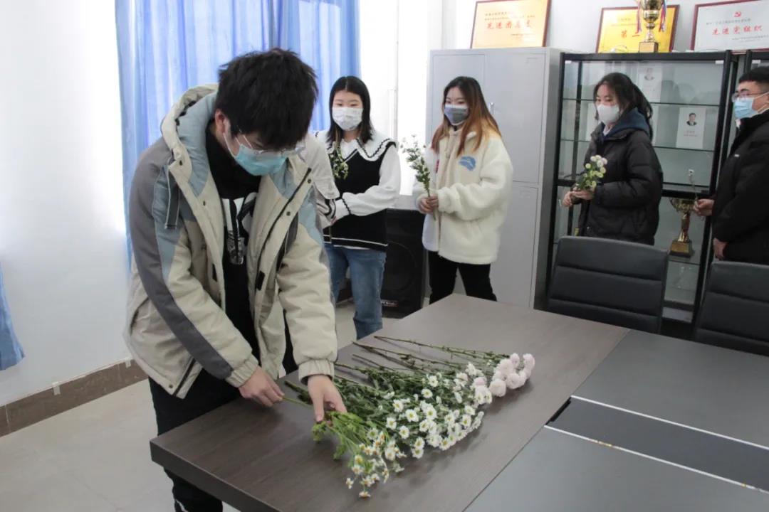 随后,刘书记带领大家进行“献花“仪式,并对逝去的同胞表示深切的哀悼。“并全体肃立默哀。