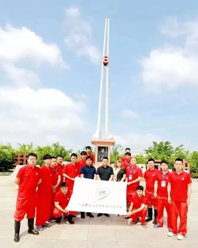 参观结束后我校校长助理、党政办主任、宣传统战部部长康平军和石油工程学院院长、教工党支部书记李岳祥以及16位实习学生一同合影,随后康助理指出,当下青年大学生所缺少的正是革命先辈们吃苦耐劳,艰苦奋斗的精神,参观胜利油田,一方面可以提高学生们的爱国主义精神,另一方面也深入贯彻铁人精神内涵,学习“宁可少活10年也要拼命拿下大油田”的忘我精神;“有条件要上,没有条件创造条件也要上”的艰苦奋斗精神。为同学们今后的工作、学习树立了良好的价值观。