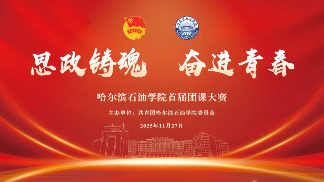 为学习贯彻习近平总书记相关重要指示精神,巩固团员青年主题教育成果,发挥共青团思政育人主力军作用,融入“三全育人”与“大思政”体系,哈尔滨石油学院首届“思政铸魂 奋进青春”团课大赛将于11月27日举办,让我们一同为师生选手加油助威,活力拉满,闪耀全场!