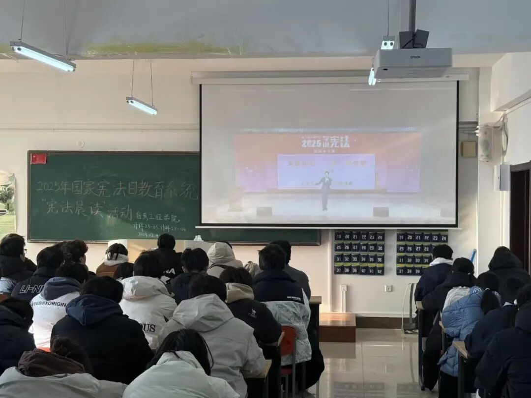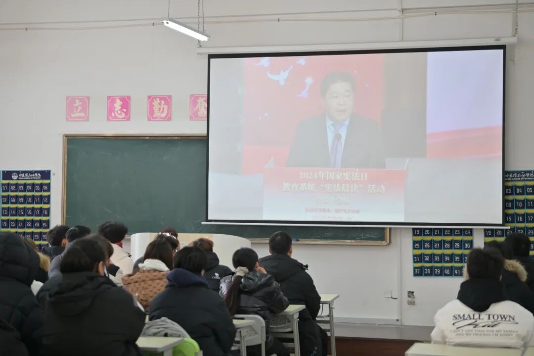 为深入学习宣传贯彻习近平法治思想,推动宪法精神在校园落地生根,2025年12月4日上午10:00-11:20,我校以“主会场+分会场”形式,组织全体师生集中观看教育部“宪法晨读”活动直播,共同参与这场浸润心灵的法治教育盛宴。