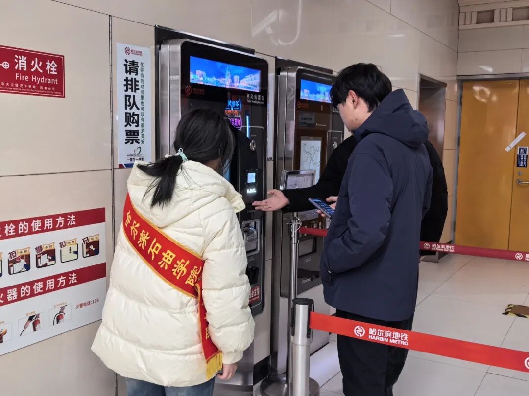 活动当天,志愿者们身着统一志愿服装,分散在售票处、闸机口、出入口等关键区域提供服务:在自助售票机前,他们耐心协助操作不熟练的乘客选择线路、完成支付;在闸机口,引导乘客有序刷卡、扫码通行,及时帮乘客解决遇到的问题;遇到携带大件行李或行动不便的乘客,志愿者们也会主动上前搀扶、提供帮助。