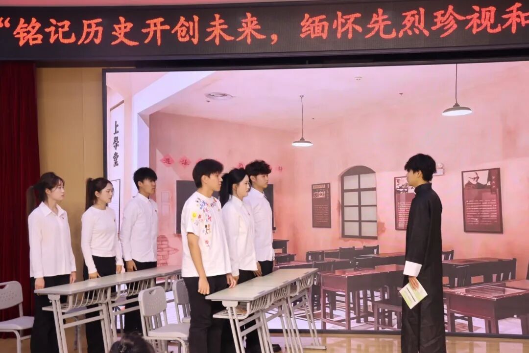 情景剧《最后一课》以细腻的场景还原与真挚的情感演绎,再现了先辈们在特殊历史时期守护文化火种、坚守民族气节的动人故事。让同学们深刻地懂得今日和平幸福生活的来之不易,进一步激发新时代青年传承先辈精神、勇担时代重任的责任感与使命感,坚定为国家发展、民族复兴贡献青春力量的信念。