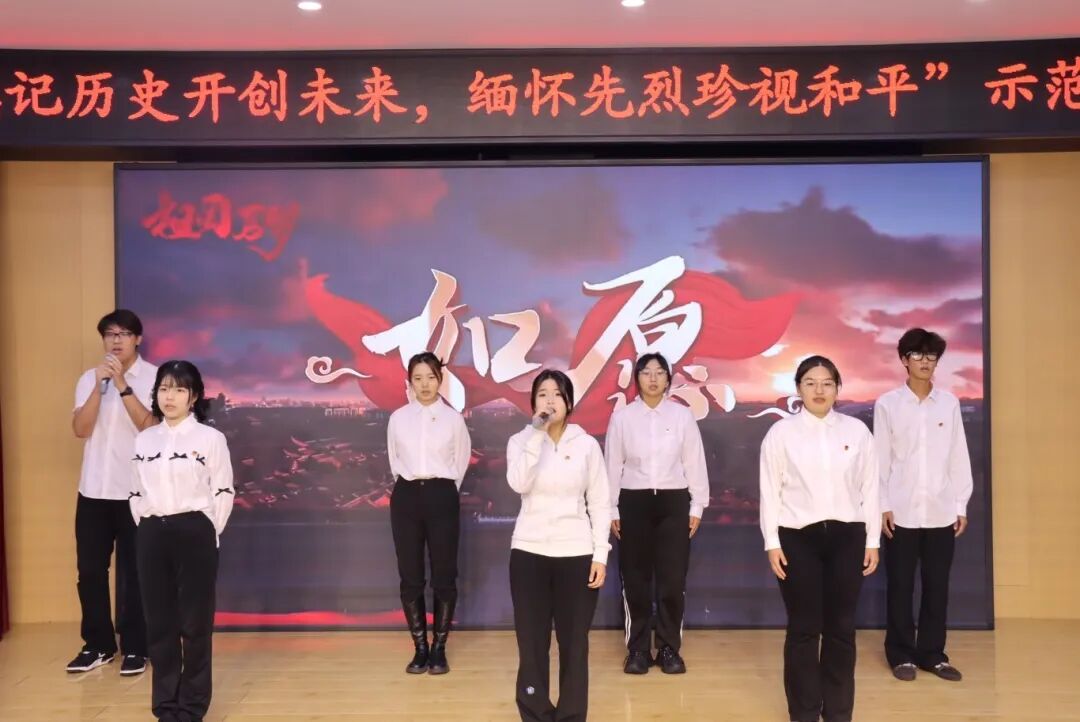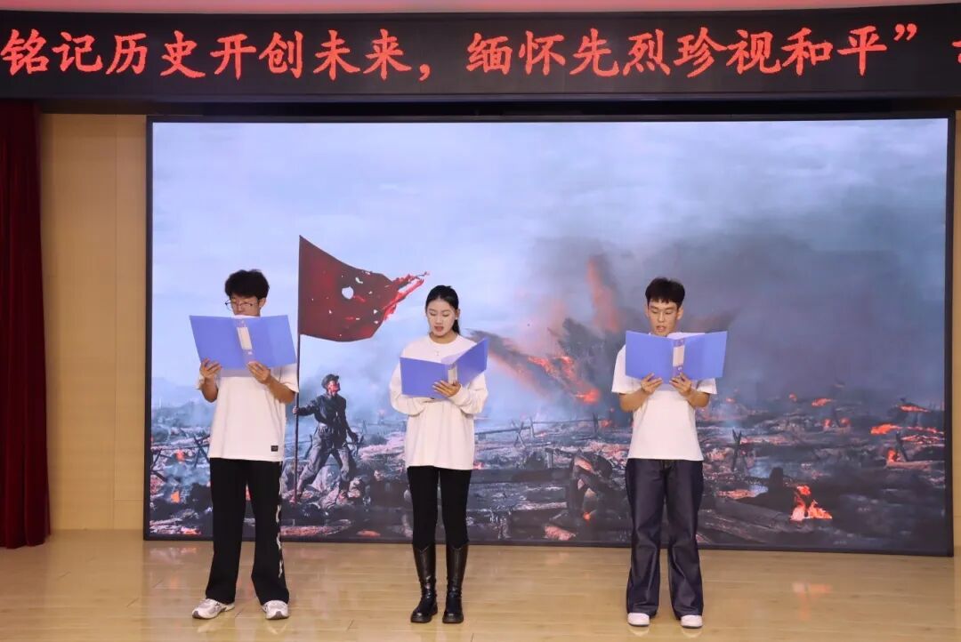 朗诵《铭记先烈,珍视和平》深情回溯先烈们浴血奋战的峥嵘岁月,以饱含敬意的文字勾勒出英雄们为民族独立、人民幸福挺身而出的壮阔图景。字字铿锵,声声入心。它让同学们在激昂的声韵中回望历史烽烟,真切感受先烈们舍生取义的崇高气节与坚定信仰,进而引发对“和平从何而来”的深度思考。同时,朗诵亦以厚重的情感提醒着我们,当铭记先烈的牺牲与奉献,珍惜当下来之不易的和平生活。