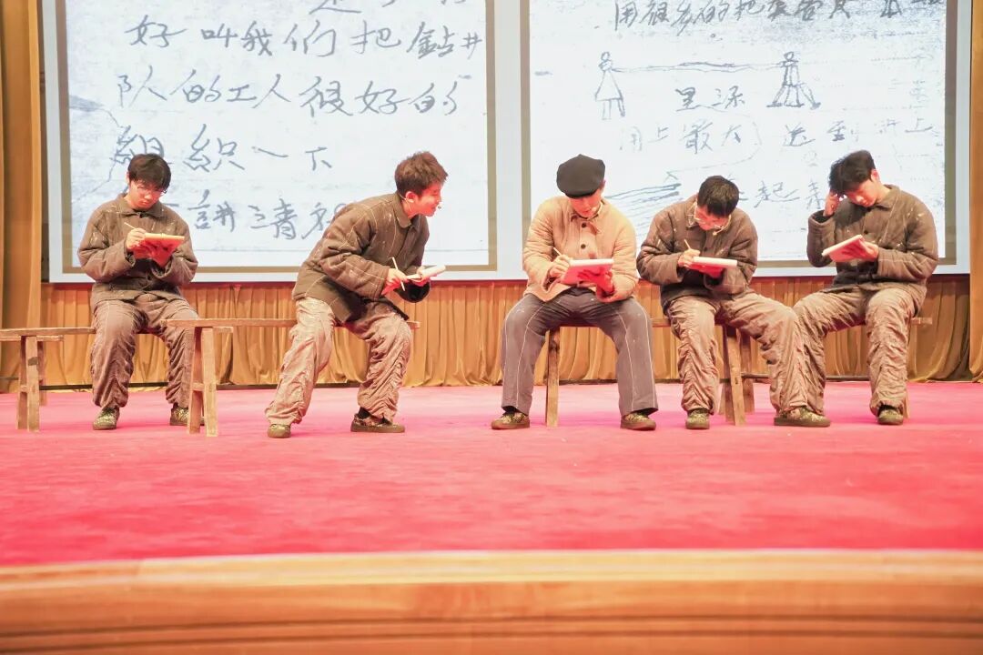 剧中王进喜扮演者、石油化工学院2024级学生李彬动情道:“当我穿上工装站上舞台,仿佛与铁人灵魂共鸣,他的精神已融入我的血脉,照亮我的精神世界!”