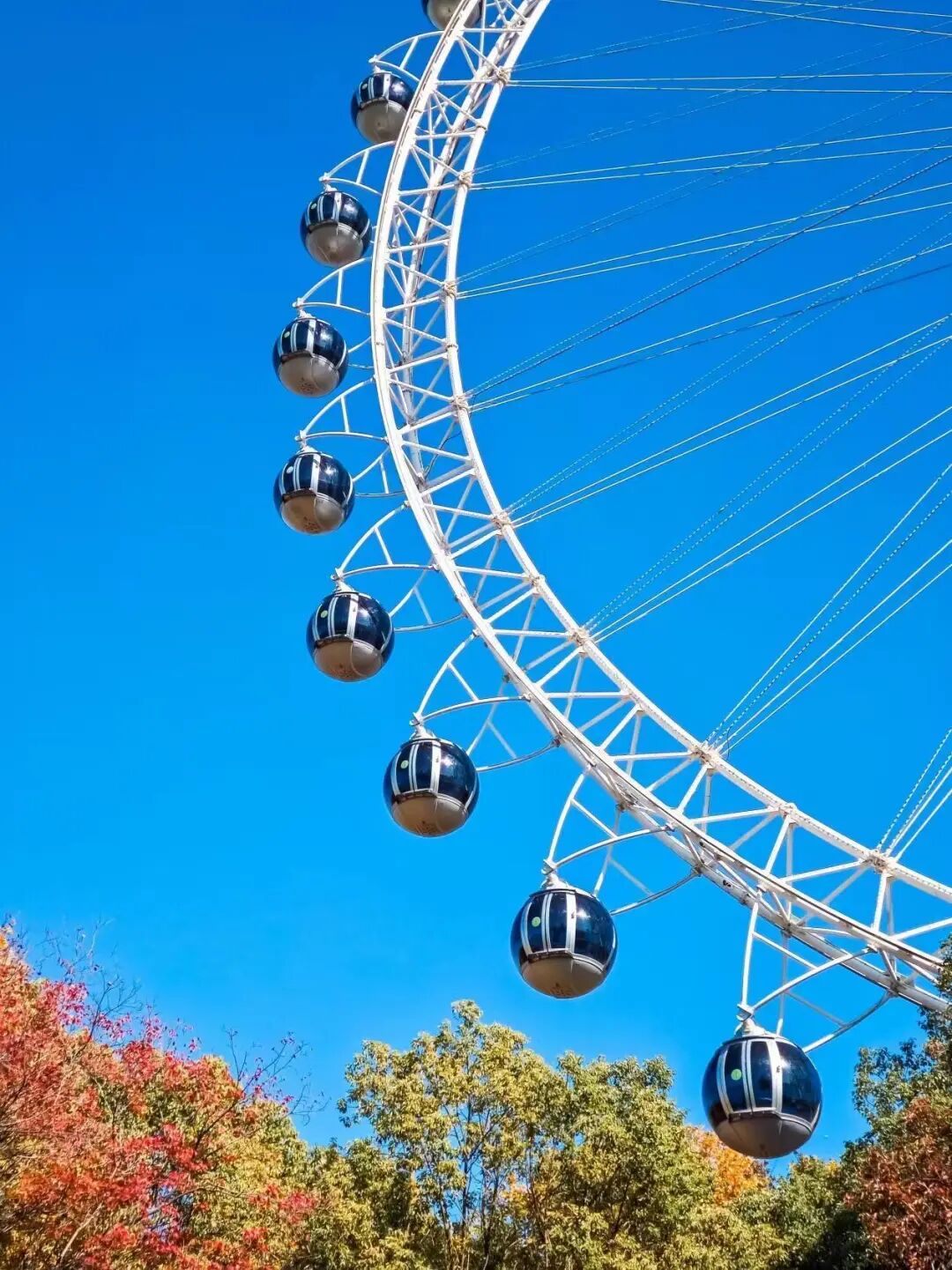 摩天轮的晴朗中裹着天津的韵味,蓝天下,白色轮架衬着深蓝座舱的模样,是刻在记忆里的明朗。秋树的红与黄漫在脚下,阳光碎成了明快的光斑,是天津独有的松弛与明亮。南昌古巷中,青灰石狮仍存旧时模样,古牌匾凝着经年墨香,檐下红灯笼摇着暖光。苏州雨后霓虹晕着七彩光韵横亘天际,白桥栏影浸在泛暖水面,每一道虹光里,都藏着雨后故土的明朗。武汉的晴空古檐依旧挑着那片澄澈,重檐瓦顶泛着金辉,彩绘梁枋刻满熟悉的岁月纹路,寂静中浸着老城独有的沉稳与精致。这刻在记忆里的庄重,是乡愁最绵长的底色。
