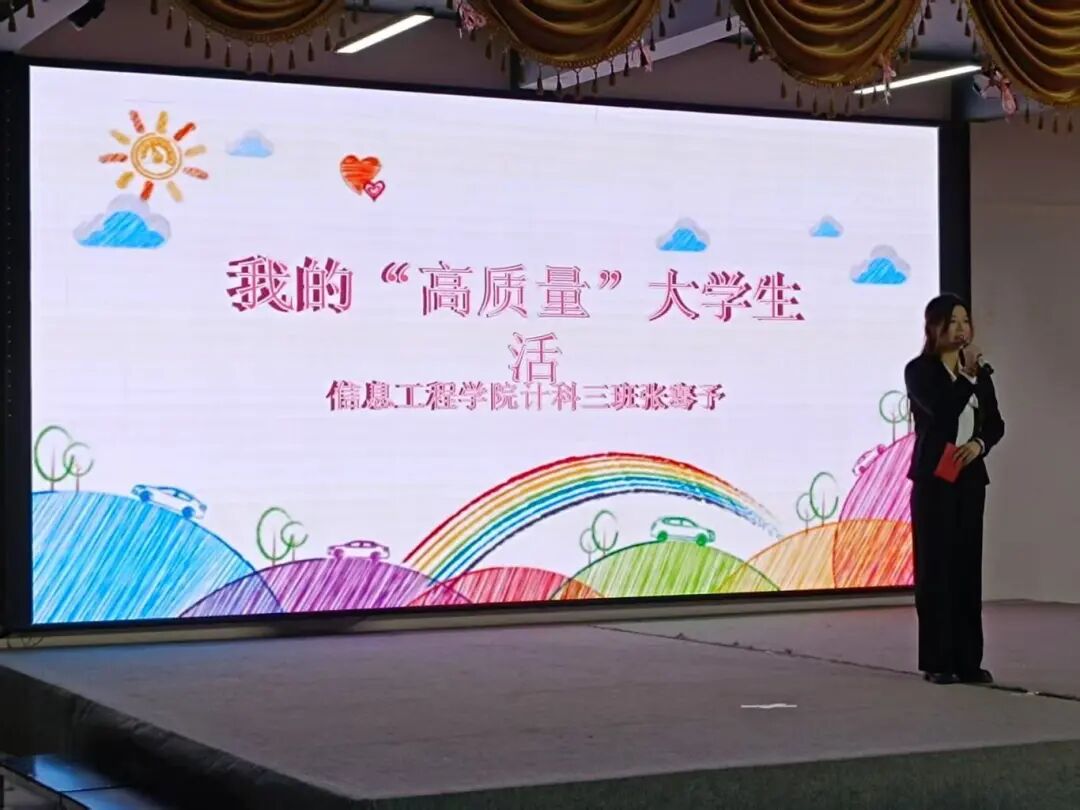 信息工程学院张骞予以《我的高质量大学生活》斩获一等奖,作品聚焦大学生活的精彩点滴,用接地气的视角和密集的笑点,展现了当代青年的积极风貌,赢得评委和观众的一致好评。