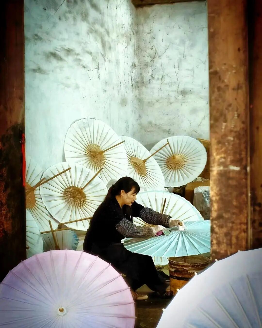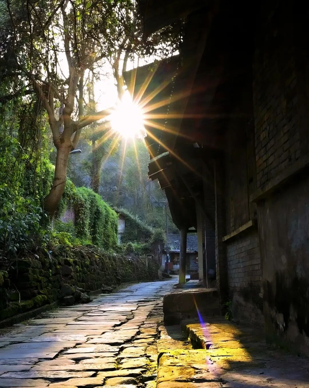 石板巷的光里,是泸州老镇的晨——阳光漏过枝桠洒在青石板上,苔痕裹着墙根湿意,藏着赤脚踏过的清冽。衣角轻蹭墙根绿藤,润润潮气漫开,是刻在岁月里的家乡味道。转角伞坊前,竹骨素伞堆靠旧墙,沾着颜料的指尖起落,藏着泸州老手艺的暖意。孩童攥油纸伞跑过雨巷,蓝染水顺伞骨滴落,混着江风酒气,成了异乡学子揣在心底、触之即温的念想。