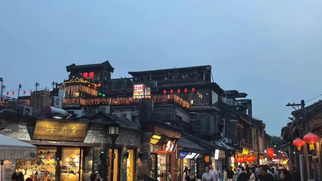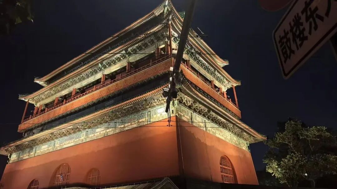 暮色刚给南锣鼓巷的灰瓦镀上层软蓝,檐角的红灯笼就亮成了心里的暖。老墙缝里浸着熟悉的烟火潮气,裹着 “子扇斋” 木匾上泛旧的光。人潮里的笑闹裹着灯带的暖,顺着这巷子里的红灯笼,轻轻撞在心上。鼓楼的朱红墙被灯暖得像旧时候家里的窗棂。檐角的彩绘裹着夜色,纹路里嵌着青绿和鎏金,是记忆中的模样。右边路牌上 “鼓楼东” 三个字浸在夜里,如今隔着千里看这灯火,连路灯杆的影子,都像故乡伸过来的手。