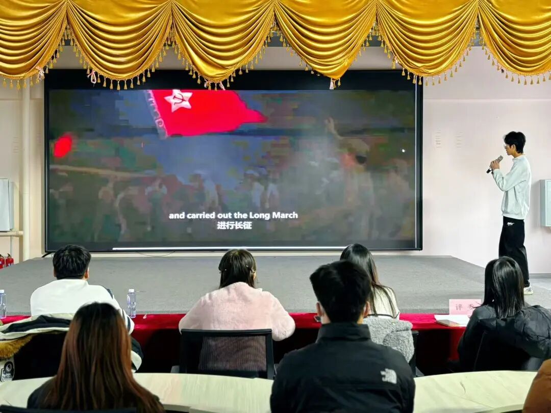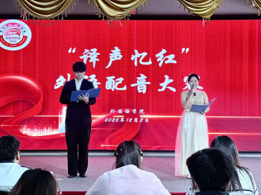 以语言为桥,传红色薪火;以初心为炬,铸家国情怀。今日,我校外国语学院“译声忆红”配音大赛在双创二楼圆满举办。活动以“外语+红色”为核心载体,将专业能力与红色传承深度融合,让青年学子在多语种演绎中感悟革命精神,在声情表达中厚植中国心,为校园红色文化建设注入鲜活动能。