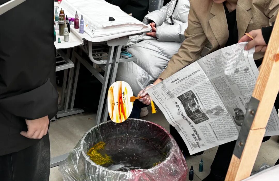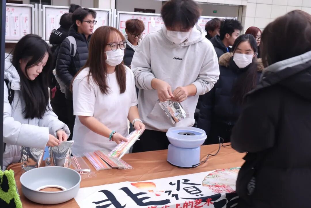现场氛围热烈而庄重,漆扇绘制、扎染工艺、剪纸艺术等非遗体验区错落有致,互动环节井然有序。同学们在亲手剪纸中感悟匠心,在色彩渐变间领略扎染之美,于光影摇曳处体会皮影戏的灵动传神。活动更融入棉花糖、糖葫芦制作竞赛等趣味环节,优胜者可即时品尝传统美味,在烟火气与文化韵的双重浸润中,深化文化认同与情感共鸣,使传统文化在青春场景中焕发新生。