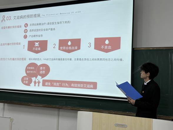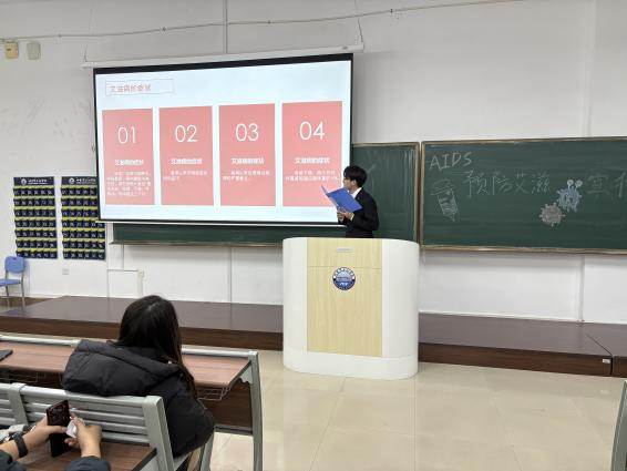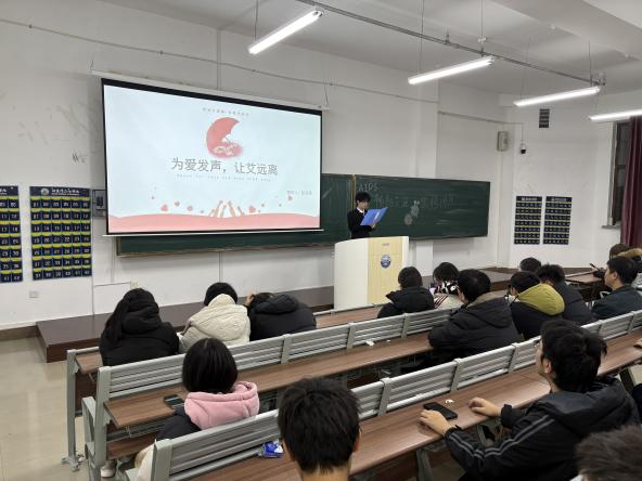 为切实加强校园艾滋病防治教育工作,增强学生群体自我防护意识,我校智能工程学院于2025年12月3日在第一教学楼507开展“共抗艾滋,共享健康”的防艾知识讲座,告别“谈艾色变”,学会科学防护。通过图文解读等形式,向学生普及防艾知识,使“共抗艾滋,共享健康”的活动主题更深入人心。