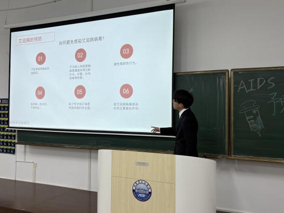 活动伊始,宣讲人借助数据可视化科普短片+现场解读,向同学们普及艾滋病的传播途径、预防措施和流行现状,还为在场大学生派发抗艾滋病宣传册,强调每个人是自己健康第一责任人。同时,他倡导反对污名与歧视,艾滋病感染者并非“异类”,而是与我们并肩同行的朋友、家人,他们真正需要的是理解与支持,而非疏远与排斥。