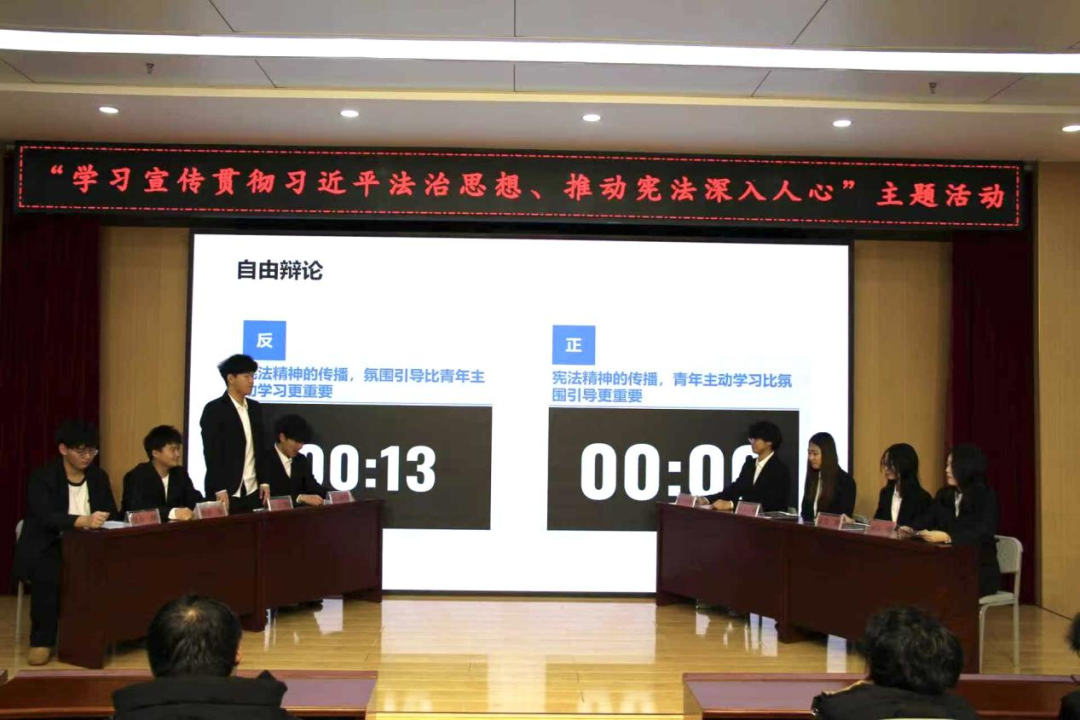 为深入学习贯彻习近平法治思想,推动宪法深入人心,我校信息工程学院近日于主教518成功举办了以“宪法精神的传播”为主题的主题辩论赛。本次辩论紧密围绕“开展学习宣传贯彻习近平法治思想,推动宪法深入人心”的核心要求,旨在引导青年学子深入思考宪法精神内化于心的路径,激发学习宪法、尊崇宪法的热情。