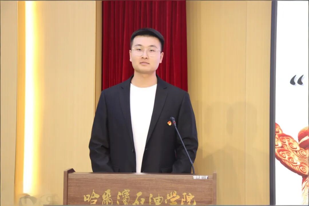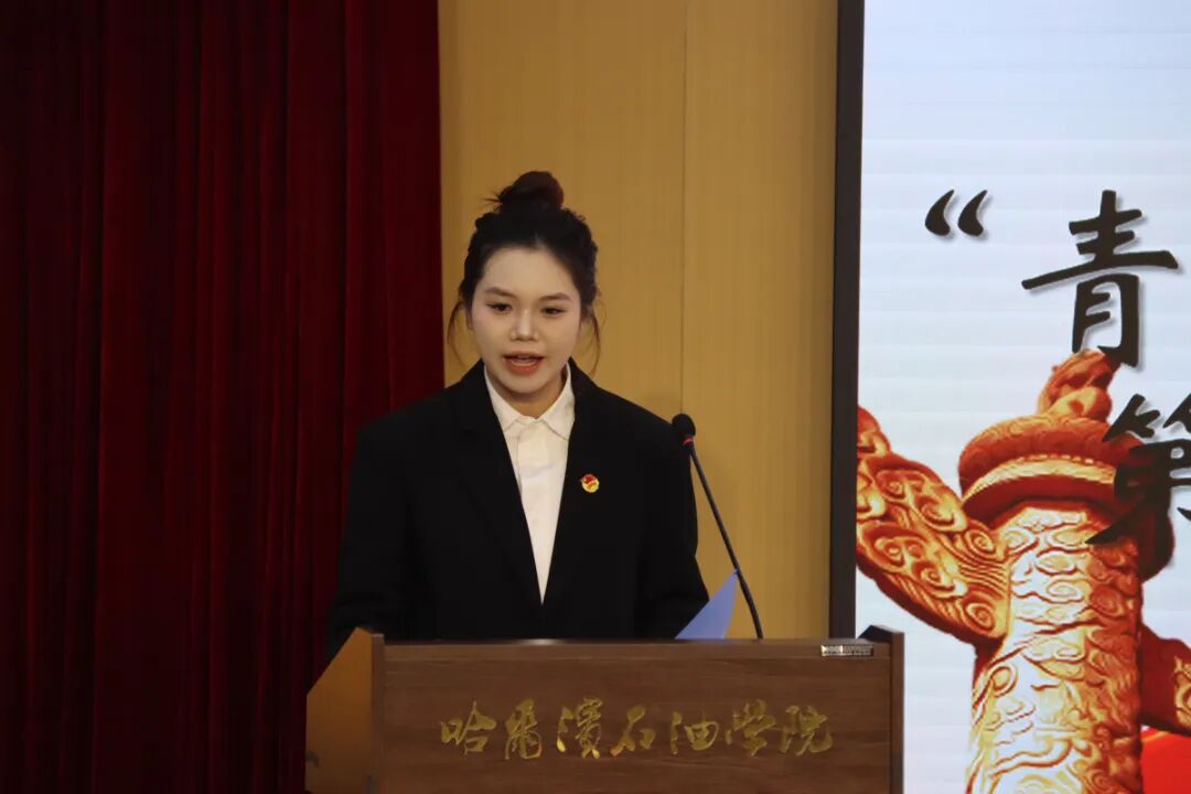 哈尔滨石油学院第七期“青马工程”培训班优秀学员代表陈杏发言。