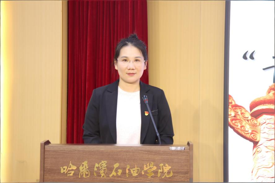 王娜老师宣读《哈尔滨石油学院第八期“青马工程”培训班培训实施方案》。