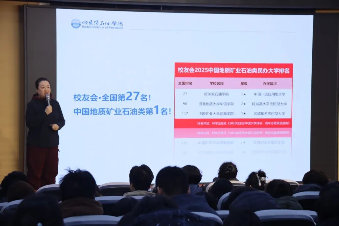 随后,招生与校友联络处副处长赵宏巍为同学们开展行前交流。她强调,本次活动,既能为母校学弟学妹答疑释惑、传递成长经验,也为同学们搭建了展现自我、反哺母校的平台。她提出,分享要以个人成长故事为载体,融入铁人精神与学校情怀,让分享内容更具温度与感染力。同时,她还详细讲解了我校学科专业优势、特色育人模式及就业亮点,并落实宣传物料保障工作,鼓励同学们结合自身专业精心筹备分享内容,以暖心叮嘱凝聚力量,以坚实保障筑牢根基,为本次活动顺利开展保驾护航。
