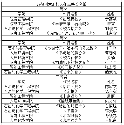影像创意汇校园参与者及作品获奖名单