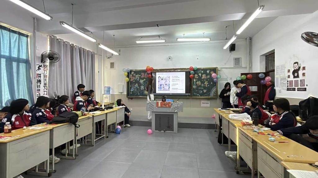 郭禹彤同学于12月31日回到大庆市第二中学,联合班主任李娜老师组织班级分享会。她通过照片、视频等丰富素材,全方位展示在哈油的学习生活、社团活动与志愿服务瞬间,同时结合自身经验为高三学子答疑解惑,提供实用备考技巧与大学规划建议,为学弟学妹的逐梦之路注入温暖力量。