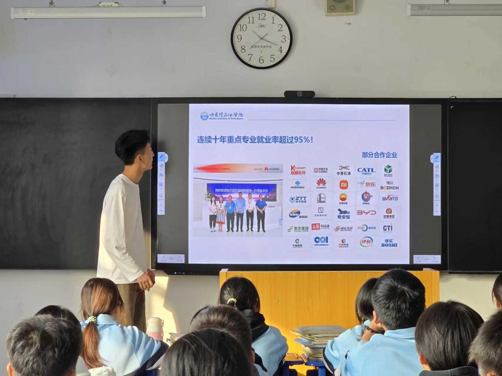 贾尚同学在河南省新乡市第七中学,结合自身在石油与化学工程领域的学习经历,向学弟学妹展示大学校园的学习氛围与成长机遇,针对学业规划提供实用建议;陈佳锜在四川省天府新区实外高级中学,通过照片、视频等形式,生动展现哈油的社团活动与志愿服务场景,为高三学子答疑解惑,传递备考技巧;崔猛则在辽宁省北镇市第三高级中学,以“铁人精神”宣讲团成员的身份,结合王进喜同志的感人事迹,激励学弟学妹树立远大理想。
