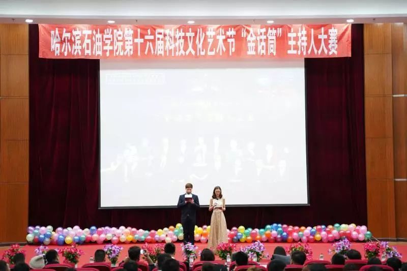 2018年11月26日晚5点,哈尔滨石油学院第十六届科技文化艺术节暨“金话筒”主持人大赛,在图书馆报告厅隆重举行。出席本次赛事的评委老师有音乐909阳光DJ舒曼,龙广高校台主播、黑龙江省口才协会培训部主任彭博、校团委书记王锦石老师、艺术学院广播电视编导专业王原老师、校宣传部干事杨雪老师。校就业办主任陈旭辉,艺术学院党总支书记刘强,校团委副书记彭雷,信息工程学院团总支书记张宏鹏,化学工程学院团总支书记李长城,土木工程学院团总支书记李培育,艺术学院团总支书记安一涵,校团委干事冯海龙以及化学工程学院辅导员姜雪峰作为嘉宾出席了本次活动。